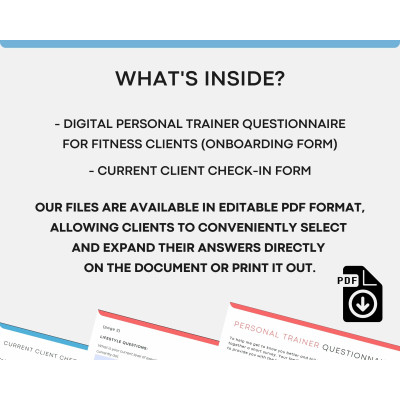 Files are available in printable, and editable PDF format, allowing clients to conveniently select and expand their answers directly on the document. This eliminates the need to print out the questionnaire and enables clients to easily send it back to you within minutes.