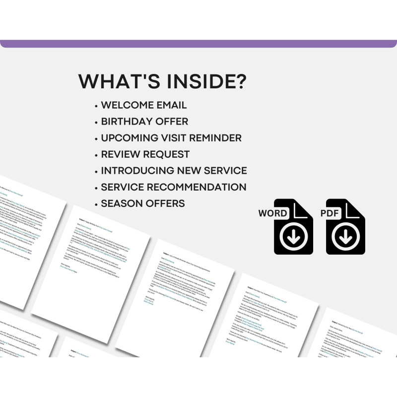 Staying connected with customers in the beauty industry can prove to be a challenging task. However, with our all-inclusive bundle of seven distinct templates, you'll have all the necessary tools at your disposal to create a highly personalized and engaging communication strategy.